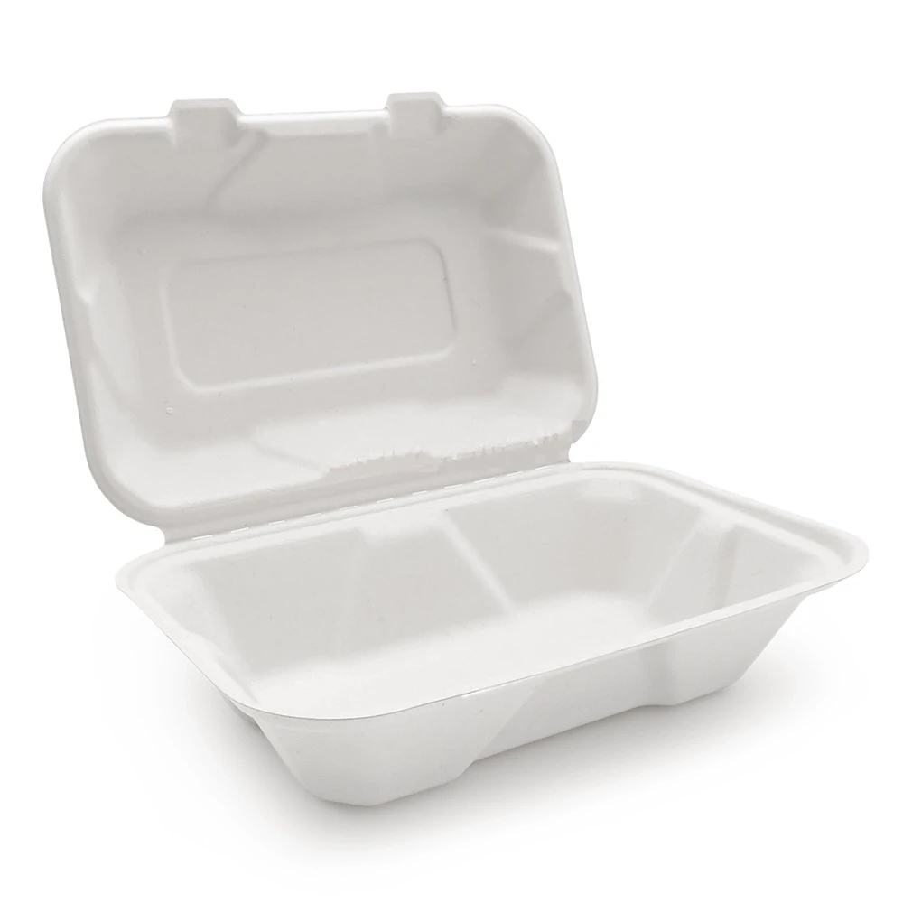 Sugarcane Clamshell 9x6x3 Inch Food Container 850ml