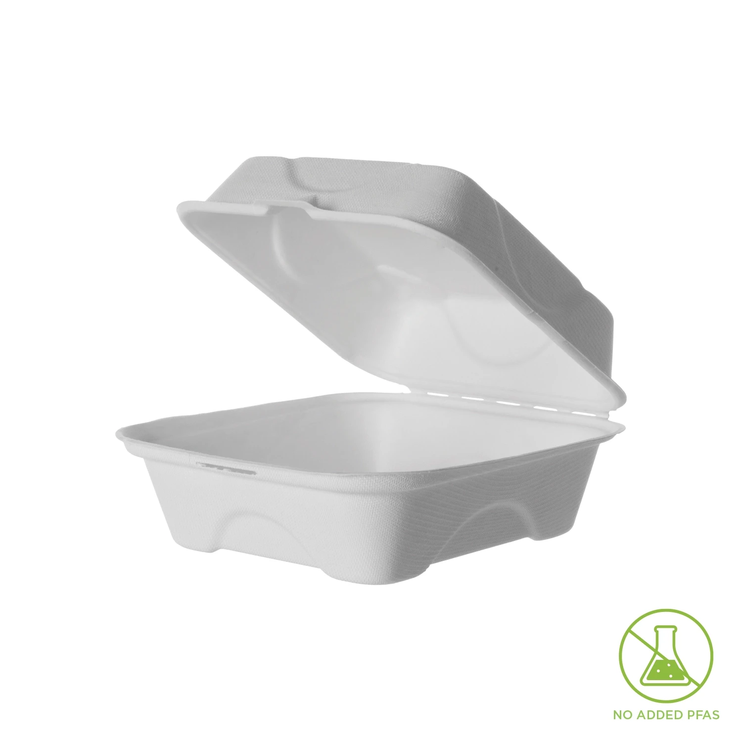 The Vanguard sugarcane Clamshells are a more sustainable alternative to traditional petroleum-derived plastics or EPS foam. Sturdy, stackable and versatile, these clamshells can handle a wide variety of foods. Removing the added PFAS chemicals can reduce the level of grease resistance, so we recommend testing in your own operating environment.