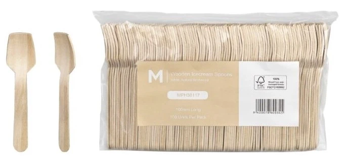 100mm unbranded wooden ice cream spoon made from sustainably sourced FSC™ 100% certified birchwood. This disposable spoon has no logo and is compostable. A more sustainable alternative to plastic spoons.